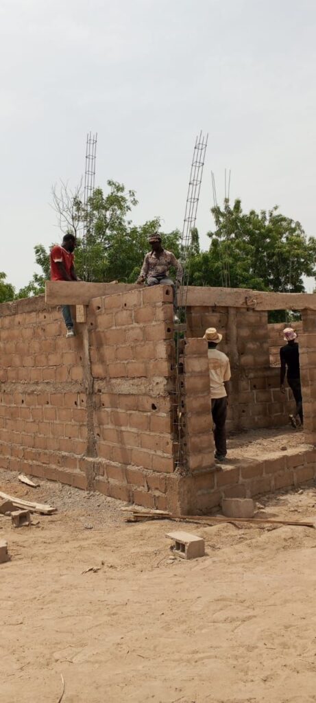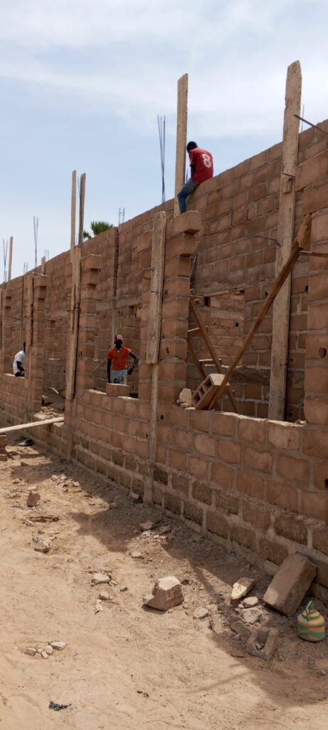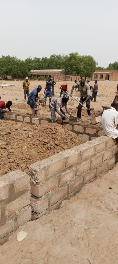 Construction is well underway for the newest school in N’Tarla. The community has come together and laborers have made great progress. In the pictures below you can see some of the supplies needed as well as the exhausting manual labor required to construct the school. In addition to the classrooms the school will provide latrines and a teacher’s office with supply room. We are so excited for the children who will benefit from all of this hard work in the very near future!